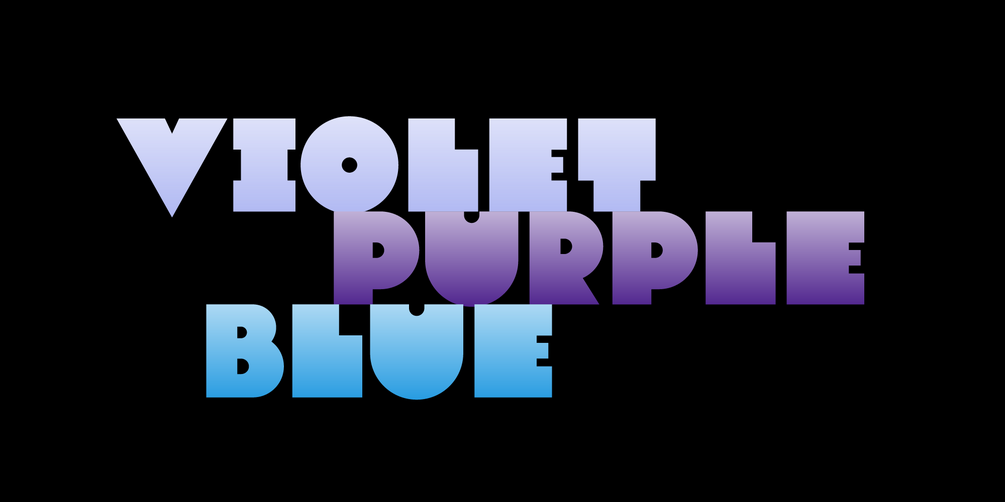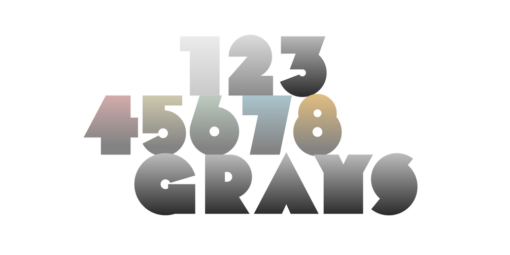 The gradients transition vertically and come in these sets; color with white, color with black, two colors, chromatic grays, grayscales, and concepts like summer or cappuccino. The font name will indicate its color. The full family contains 84 fonts, this includes one regular uncolored font. Here is a list of every color font in the family.