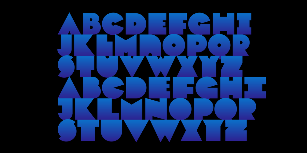 Varese Gradient is a color font for display, headlines, or large body text. Use it for bold graphic statements or a vintage mood. Its geometric style is inspired by Art Deco and early 1900s European travel posters.